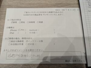 スマホスピタルイオンタウン茨木太田 【お客様の声】iPhone 12mini バッテリー交換を行ないました!!!