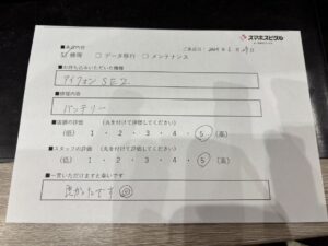 【お客様の声】iPhoneSE(第2世代)のバッテリー交換を行いました。