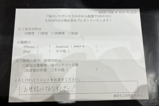 【お客様の声】AQUOSsense2バッテリー交換しました!
