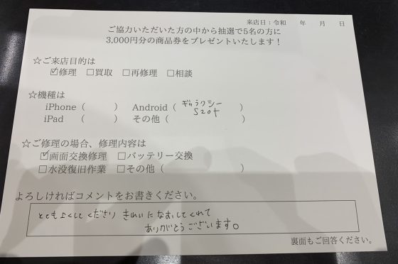 【お客様の声】GalaxyS20plus 画面交換しました!