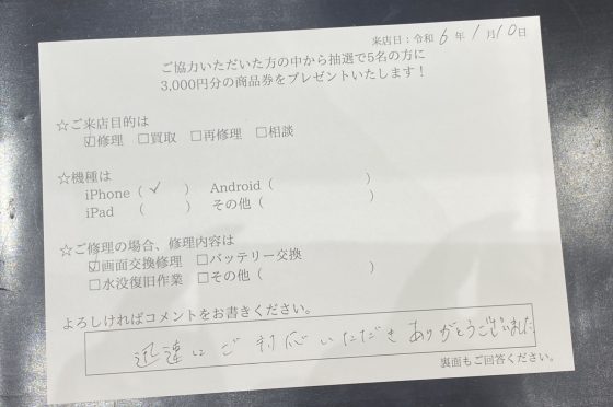 弊社の修理サービスをご利用いただいきましたお客様の声です。