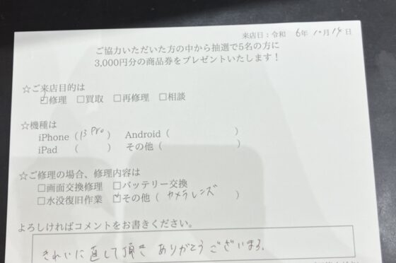 【お客様の声】iPhone13Proカメラレンズ交換しました!