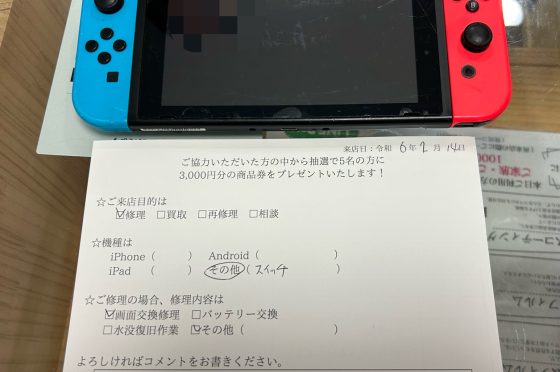 【お客様の声】Nintendo Switchの液晶交換をしました!