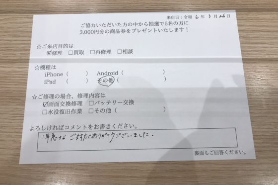 弊社の修理サービスをご利用いただいきましたお客様の声です。