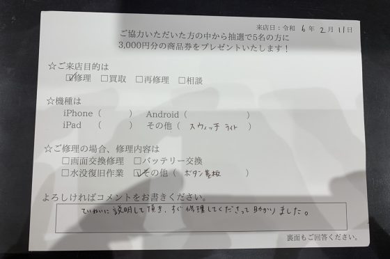 【お客様の声】Switchite 十字ボタン基板交換しました!