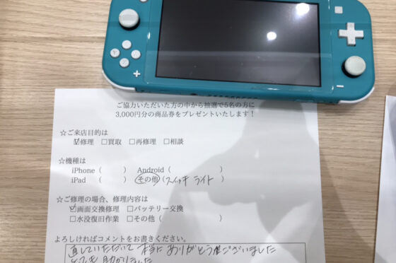 【お客様の声】NintendoSwitchLiteの液晶画面交換しました!