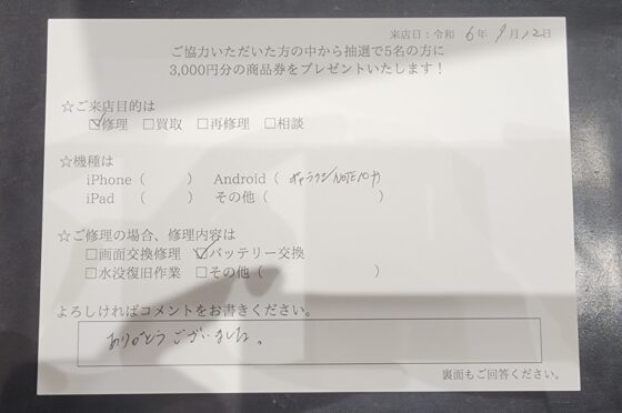 【お客様の声】Galaxy note10+のバッテリーを交換しました!