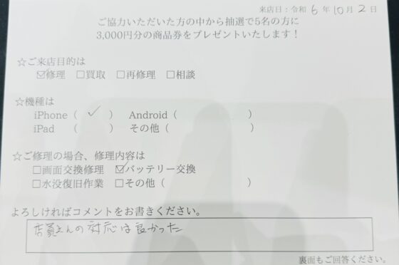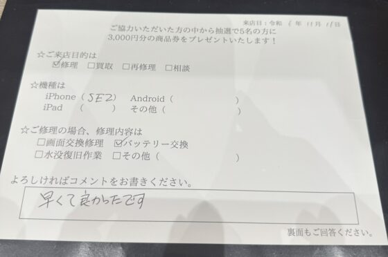 【お客様の声】iPhoneSE2 バッテリー交換!!