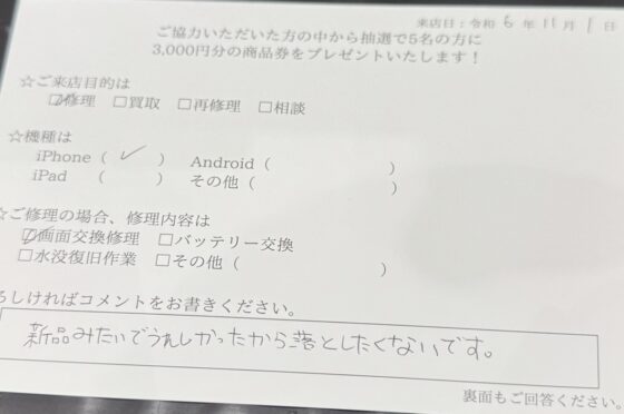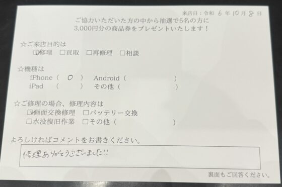 【お客様の声】iPhoneSE(第3世代)画面交換しました!!