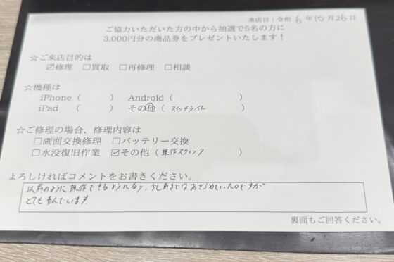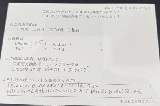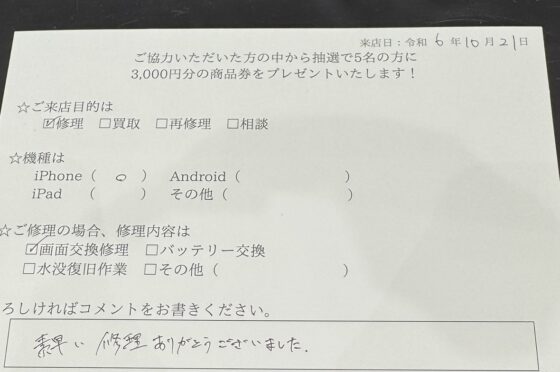 弊社の修理サービスをご利用いただいきましたお客様の声です。