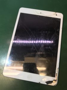 お客様より、使っているiPad mini3を落としてしまい、画面ガラスが割れてしまったと修理のご相談がありました。