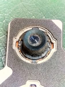 この写真のものはカメラユニット本体のレンズの方なのですが割れを放置して使用していたため傷や汚れが目立ちます。