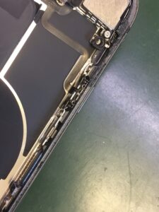 iPhoneではたまに見られる症状で、原因はボタンやフレームの歪み、汚れの詰まり、内部のボタンパーツの故障など様々です。