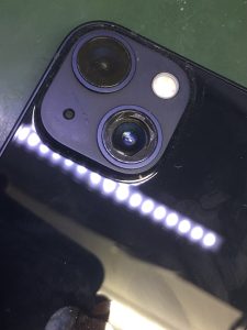カメラレンズが割れて、穴が空いてしまった。iPhone13のカメラレンズ交換修理。