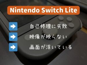 画面が浮いて液晶が真っ暗でゲーム画面が映らなくなってしまってたスイッチライトの修理依頼を頂きました。