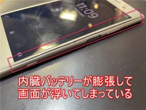 今回修理ご依頼を頂いたのは電池膨張により画面が浮いてしまっているという