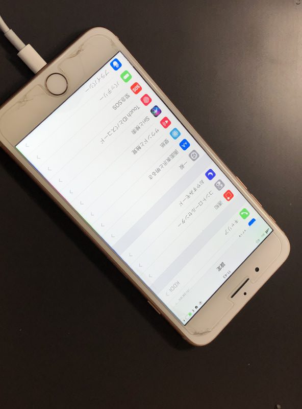 ガラスフィルムは割れてしまっているがホームボタンや画面ガラス、背面ガラスなどに割れはなく外観状態としては正常。