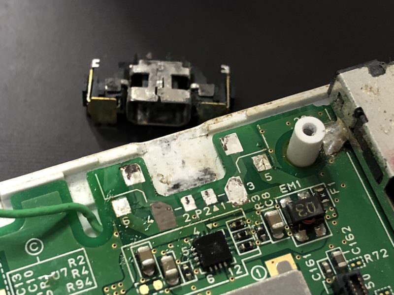 充電口を固定させる為のはんだ付け部分、パターンごと剥がれている!!