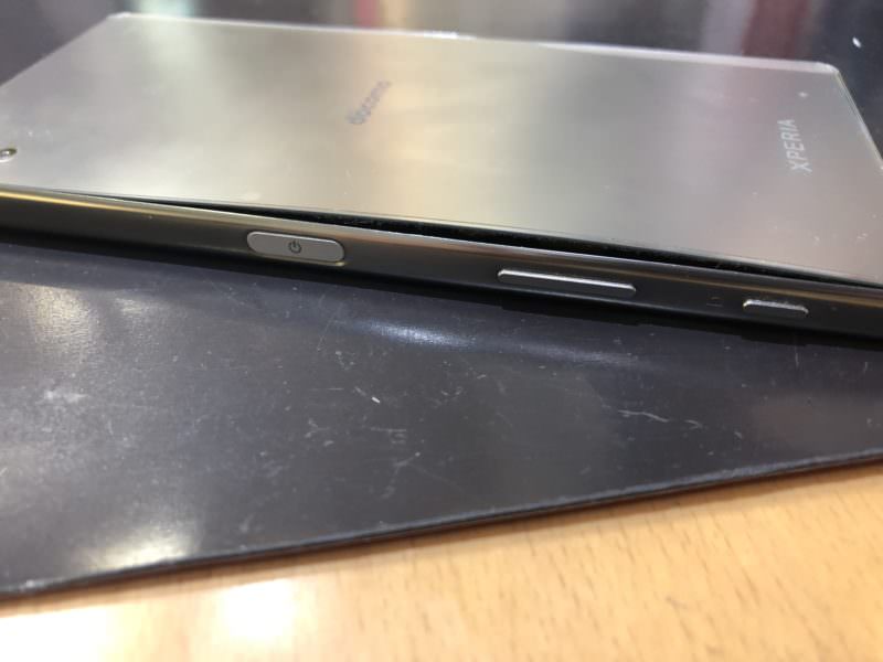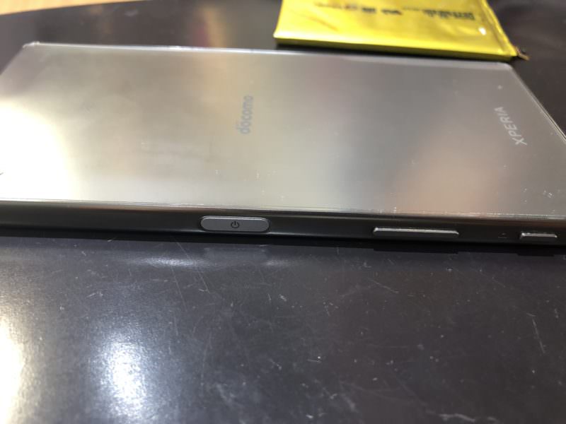 お預かりしたXperiaはこんな感じで見た目ですぐに電池が膨らんでるのがわかる状態だった。