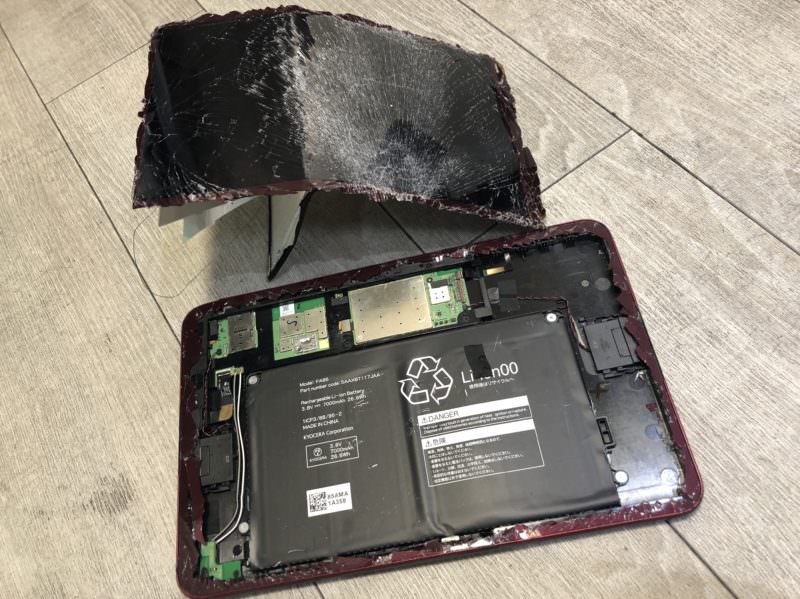 画面がめちゃくちゃに割れてしまっていて画面と本体が2つに分かれてしまったという事だった。
