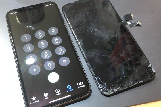 ガラスが割れてタッチが連打されてしまうiPhoneXSを修理しました【伊丹市アイフォン修理店】