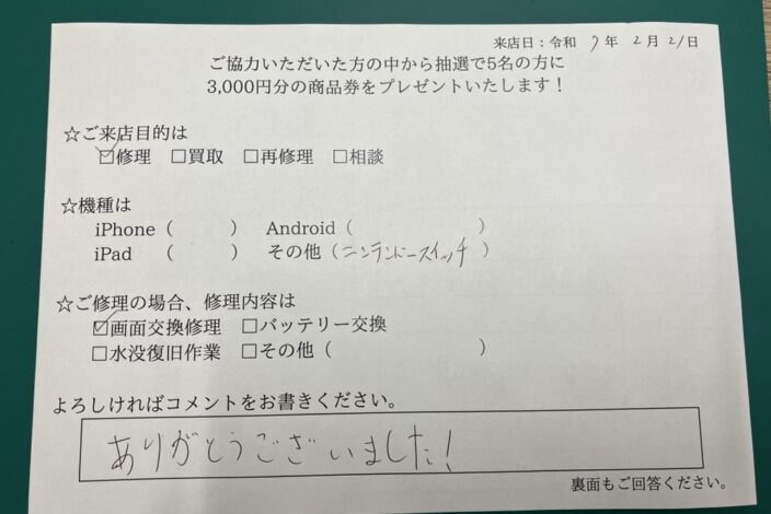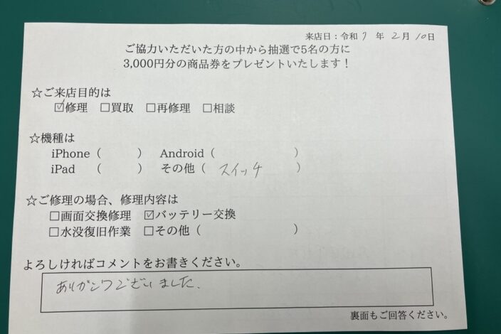 - 郵送いただいた端末を修理