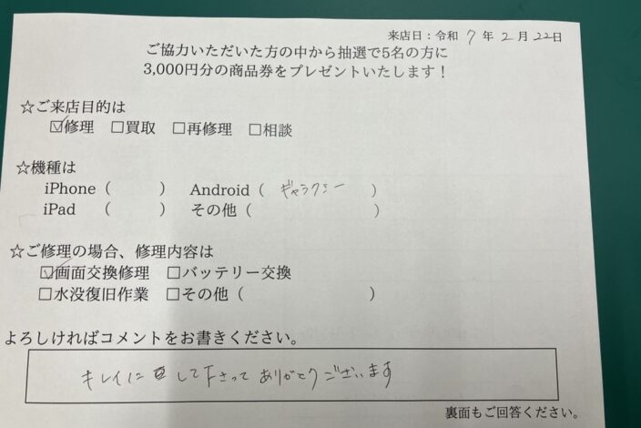 修理作業を完了した端末をお渡しします。