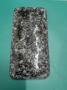 お預かり時点でのiPhone14は、画面全体がクモの巣状に割れており、表示も操作もほぼ不可能な状態でした。