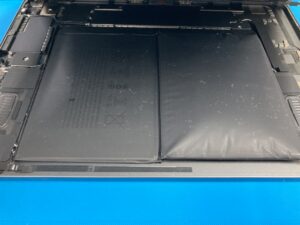 こちらのバッテリーは片側が膨張してしまい、画面を押し上げている危険な状態でした。