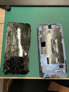 外した後は本体フレームに残っている細かいガラスを剥がします。