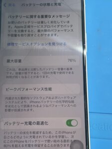 今回のバッテリー最大容量は76%でした。