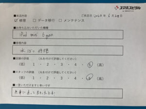 スマホスピタル 神田 iPadmini第6世代の修理のお客さまよりコメントを頂きました。