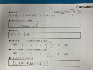 スマホスピタル 神田 【神田】iPhoneSE3の修理のお客さまよりコメントを頂きました