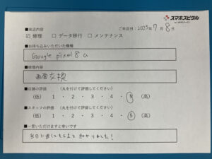 スマホスピタル 神田 pixel8aの修理のお客さまよりコメントを頂きました。
