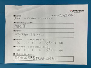 スマホスピタル 神田 iPhone8の修理のお客さまよりコメントを頂きました。