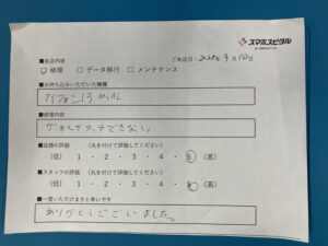 スマホスピタル 神田 iPhone13miniの修理のお客さまよりコメントを頂きました。