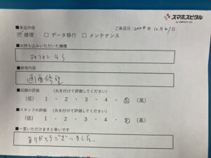 スマホスピタル 神田 iPhone4sの画面修理のお客様よりコメントを頂きました
