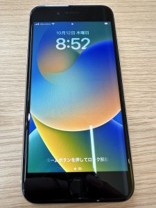 ※店舗のiPhoneSE2です。リユース品ですがガラスが艶やかで汚れも落としやすいです。