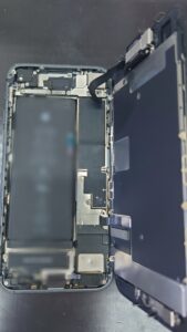 そのあと、本体に張り付いてるバッテリーを慎重に取り外して、新しい物と交換します。