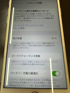 iPhone7 バッテリー交換 バッテリー最大容量67%から100%へ 即日対応