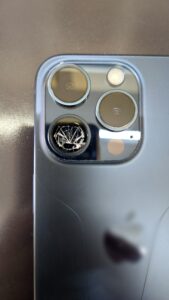 3つのカメラのうち1つのレンズが割れてしまっています。