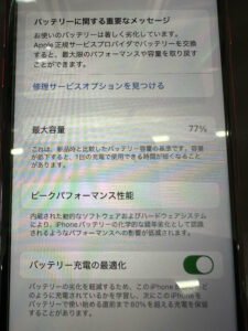 バッテリーの最大容量が77%になっていました。