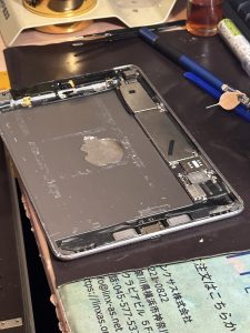 iPadの画面および表面ガラスは極薄なのと接着剤で固定されているため、割れのリスクが大きいことをご説明。