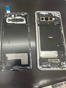 水没で助かる端末と助からない端末は運次第のところもありますが、今回の端末はバックパネルが簡単に分離できたので、接着剤が劣化していた可能性があります。