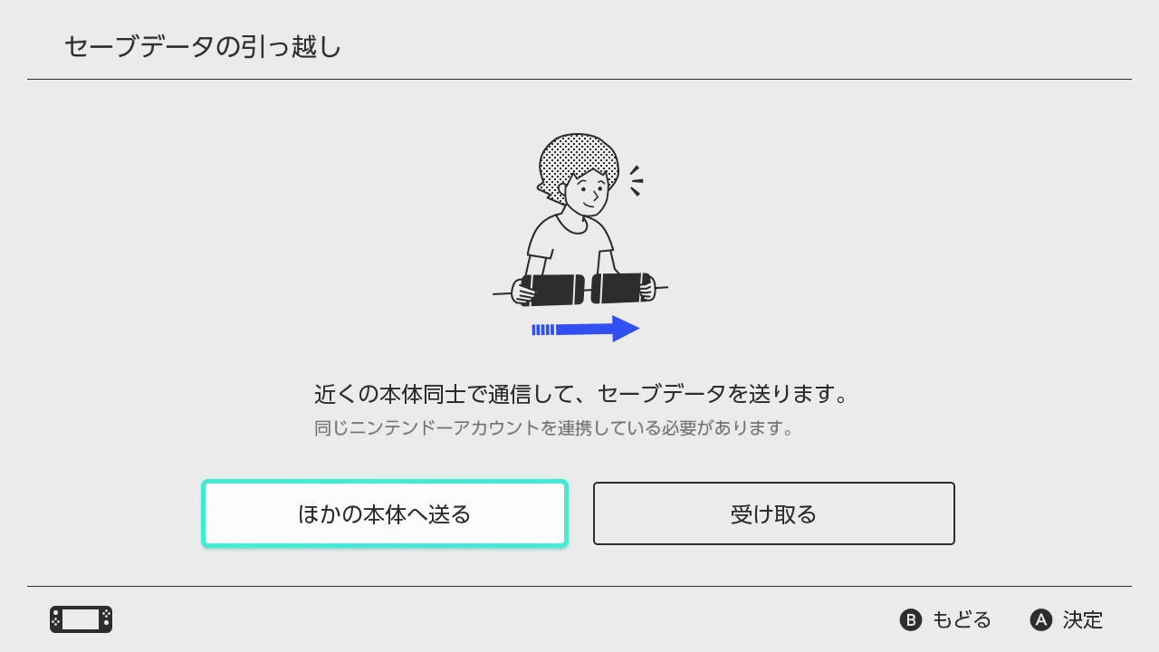 「セーブデータの引っ越し」を選ぶと「送る側」と「受け取る側」の2択が出ますので