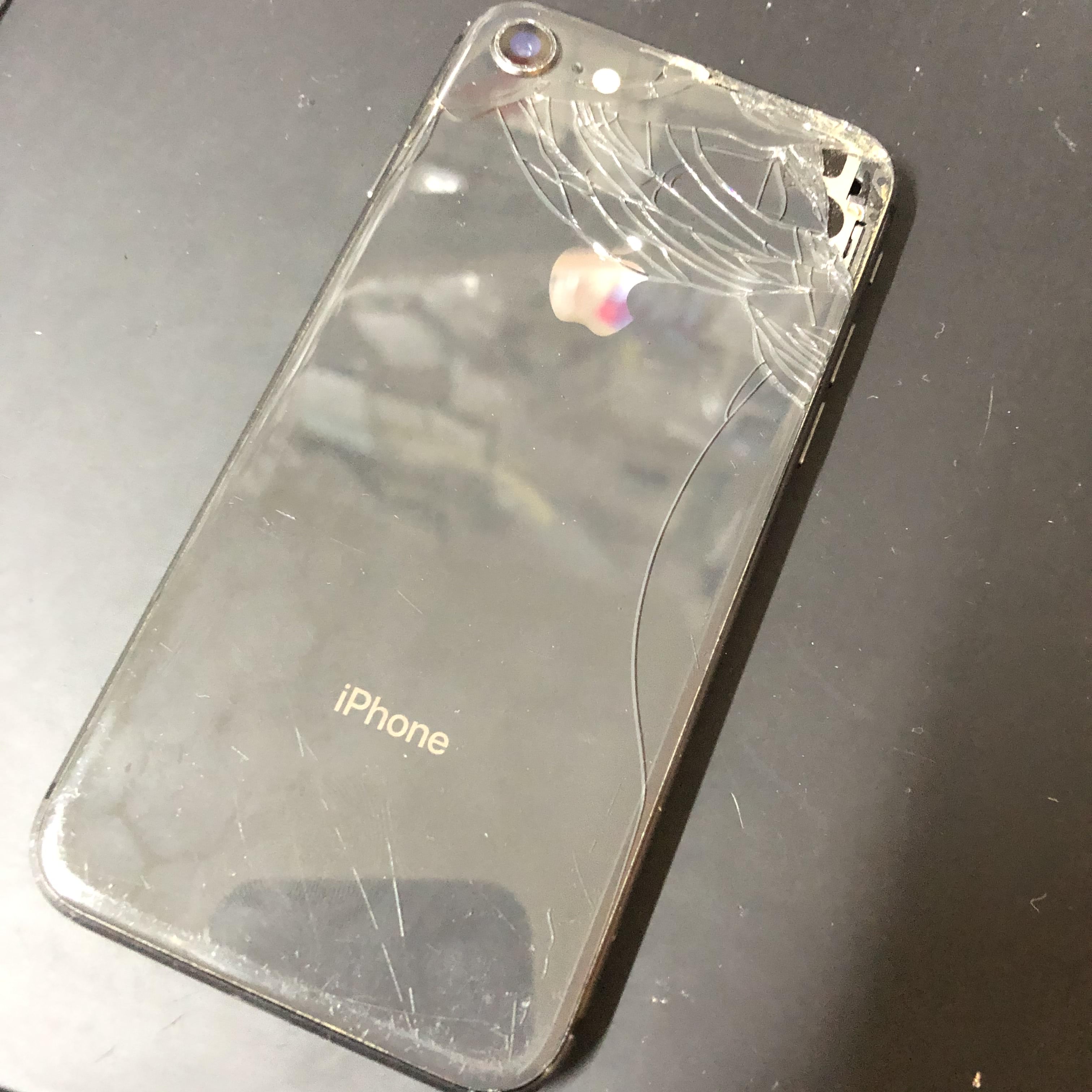 iPhone 8の背面ガラスが割れて中が見えている(;゚Д゚)交換出来ます!【吉祥寺】南口から徒歩30秒!