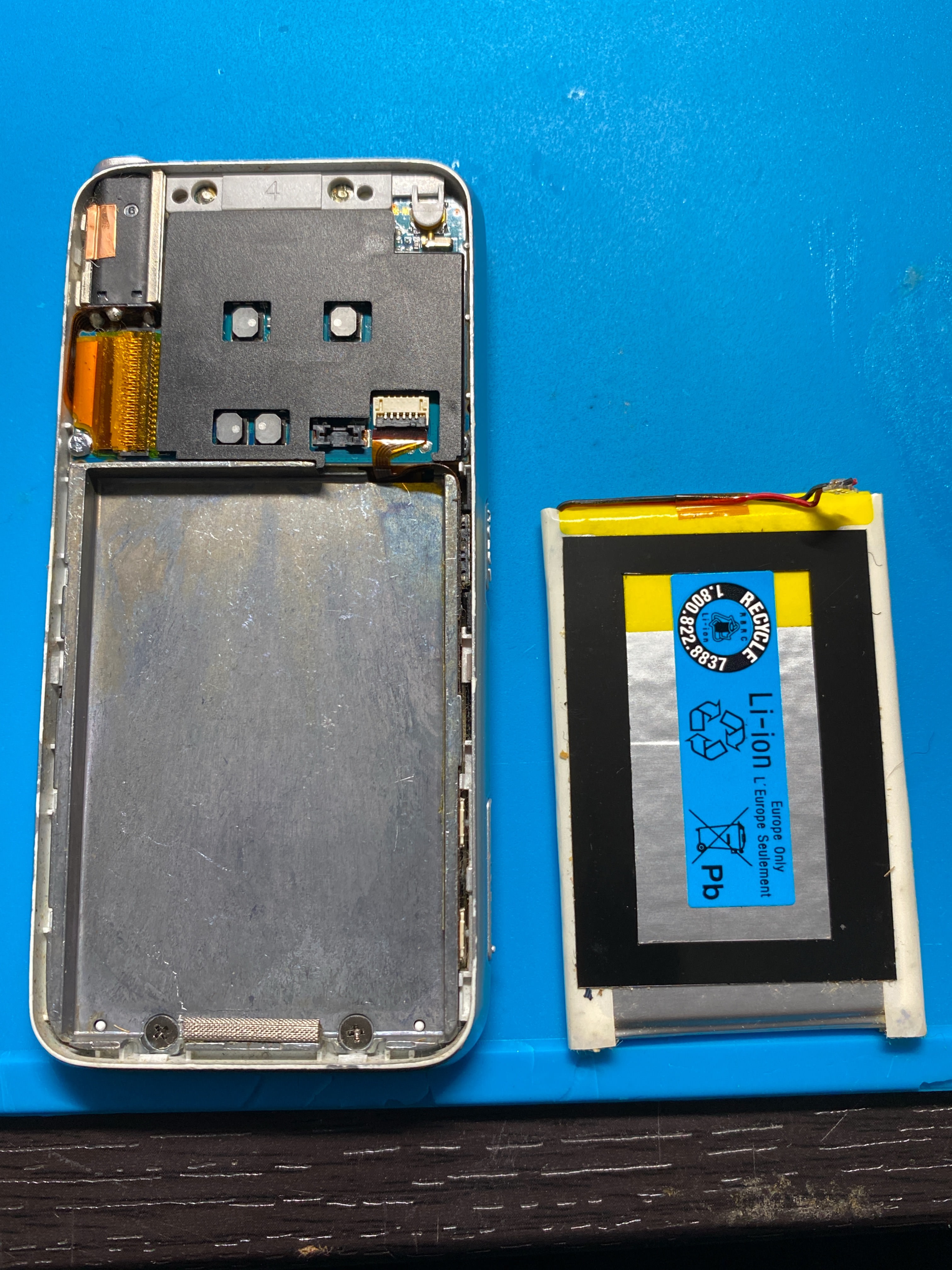粘着テープでバッテリーがくっつけられているので剥がして本体から取り外せば