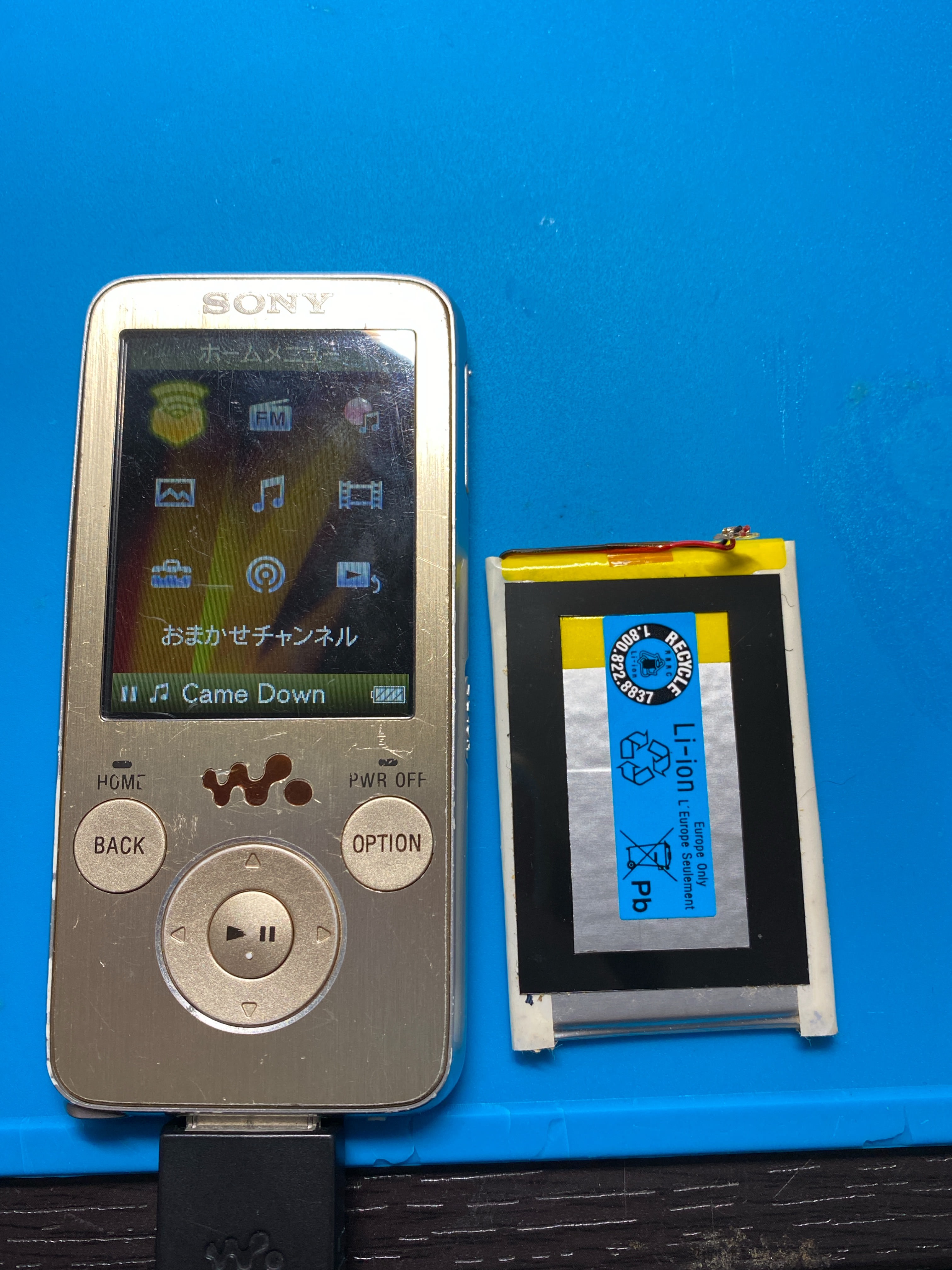 今回のWalkmanのバッテリーはコネクタでくっついています