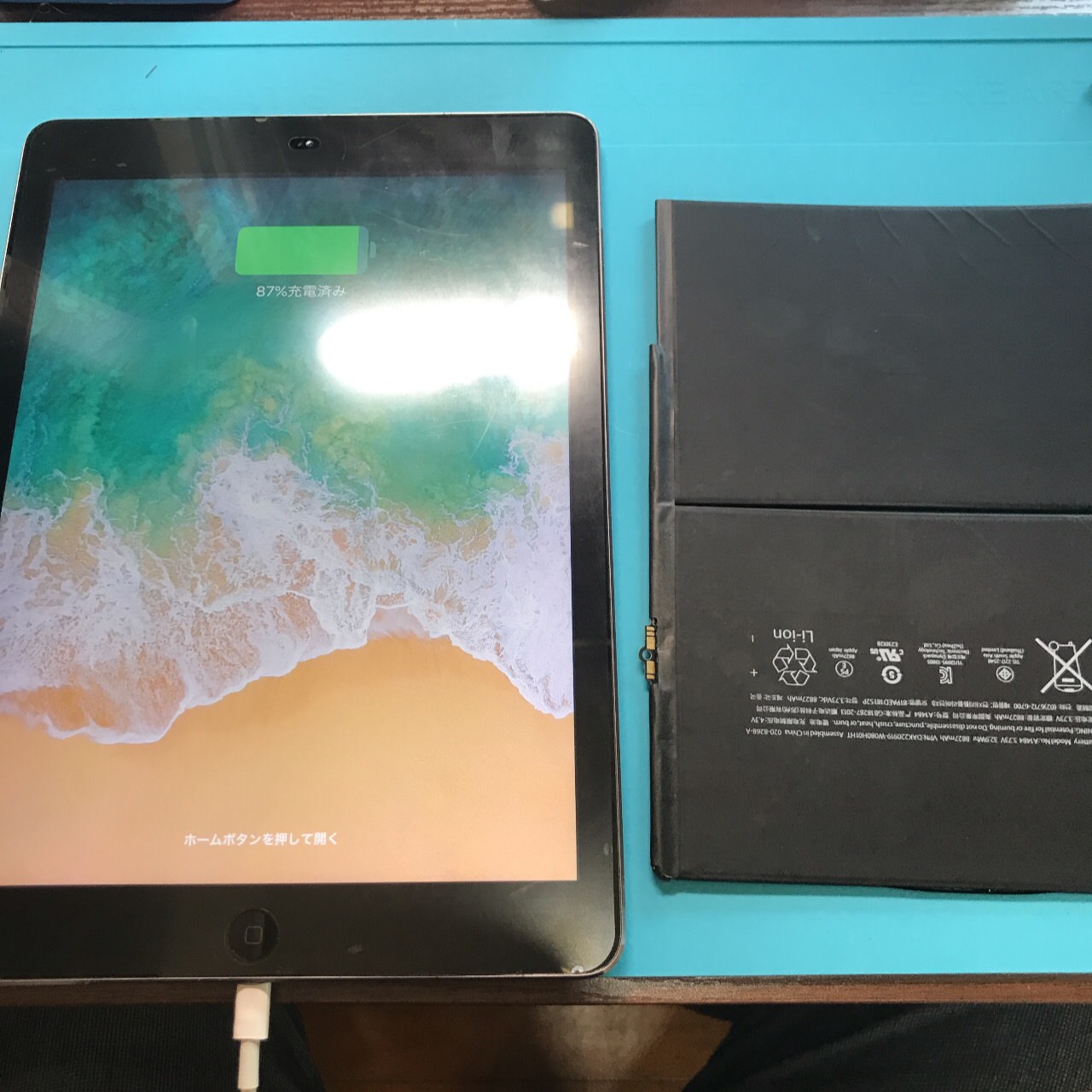 iPadAir1世代 ケーブル抜くとすぐに電源が落ちる バッテリー劣化です!