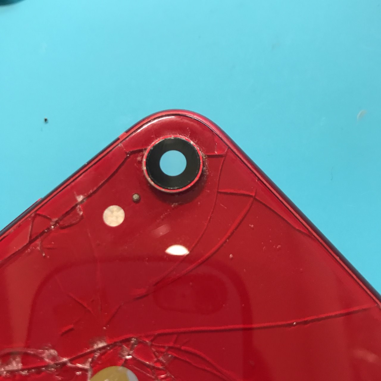 iPhoneXRカメラレンズが落とした衝撃で割れた!レンズだけかカメラ全体が割れたのか分からない!